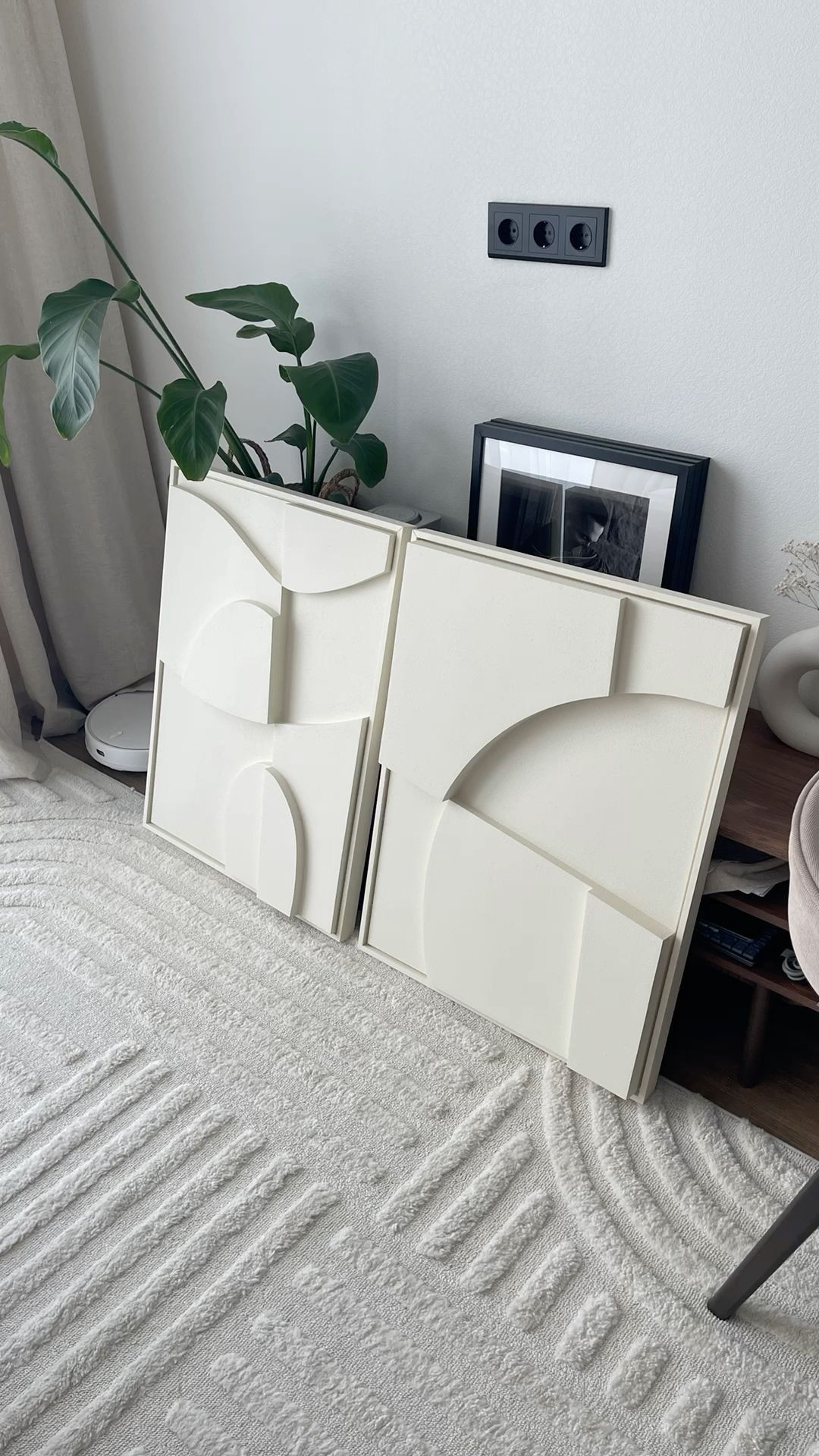 De 3D-kunstwerken van Abstracta zijn met de hand gemaakt, duurzaam en eenvoudig van ontwerp. Ze worden vervaardigd van gerecycled hout en afgewerkt met natuurlijke verf. Elk kunstwerk krijgt een op maat gemaakte lijst, waardoor ieder stuk uniek is.