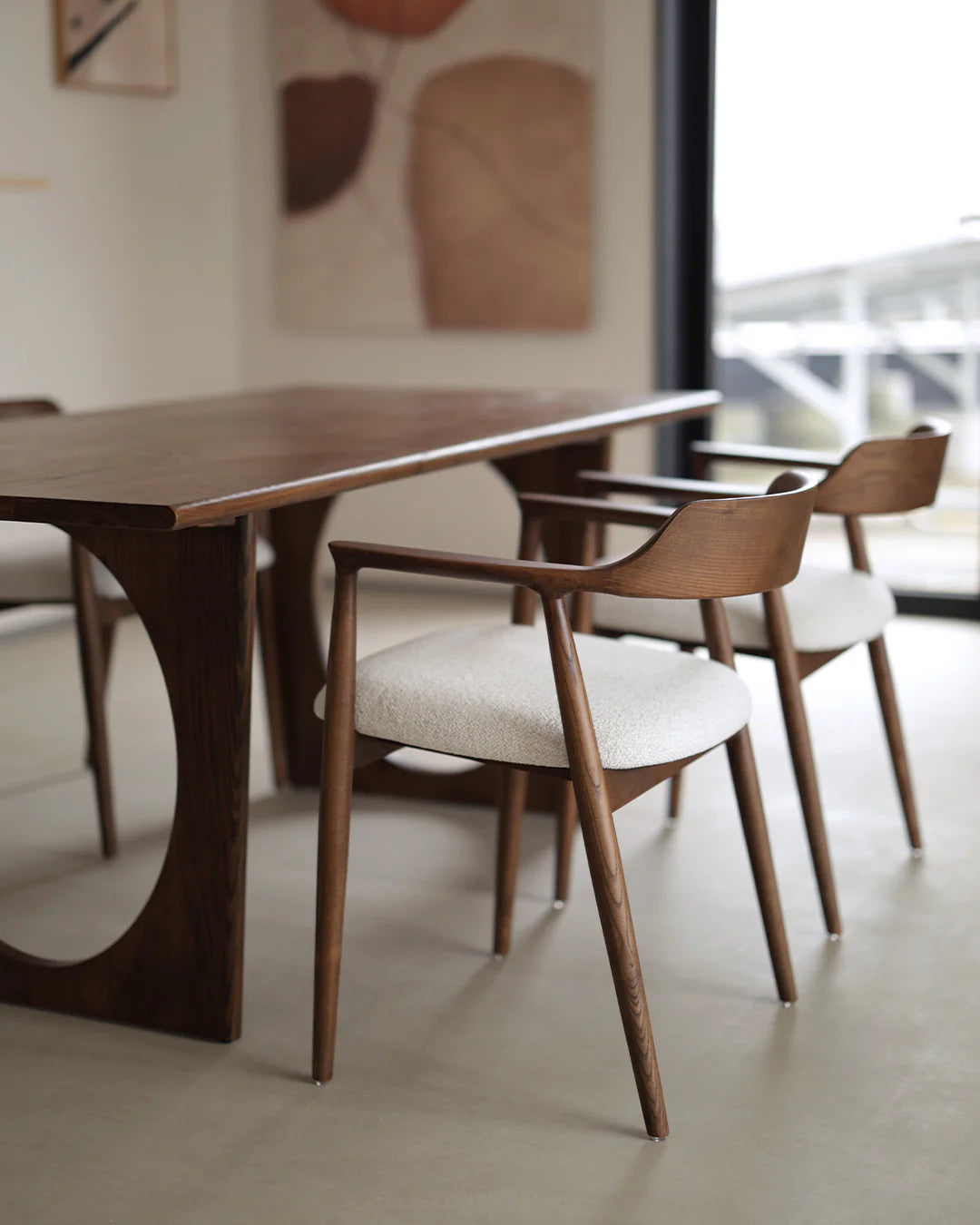Gemaakt van duurzaam essenhout en gelaagd multiplex combineert hij kracht met natuurlijke schoonheid. De zachte foamzitting met structuurstof zorgt voor comfortabel zitgemak en een aangename, luxueuze feel.